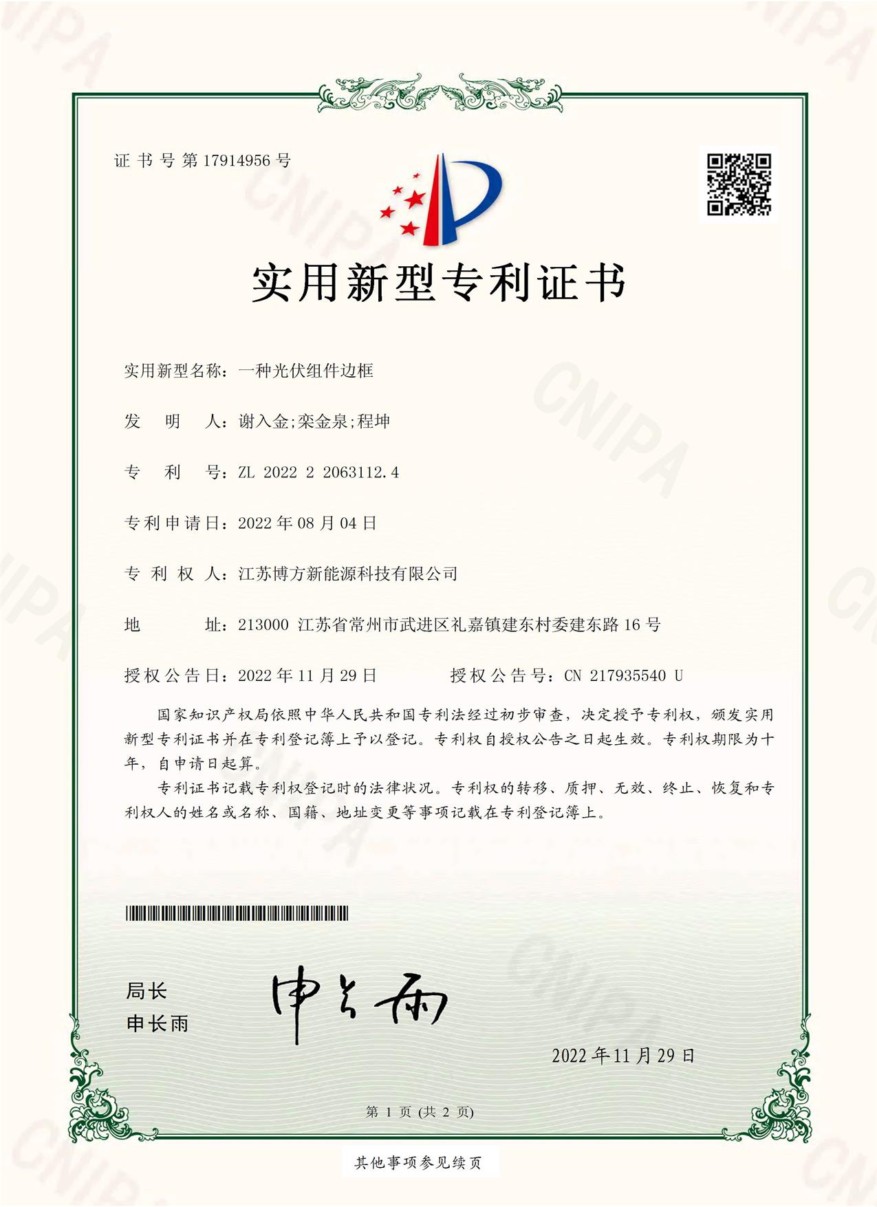 专利证书